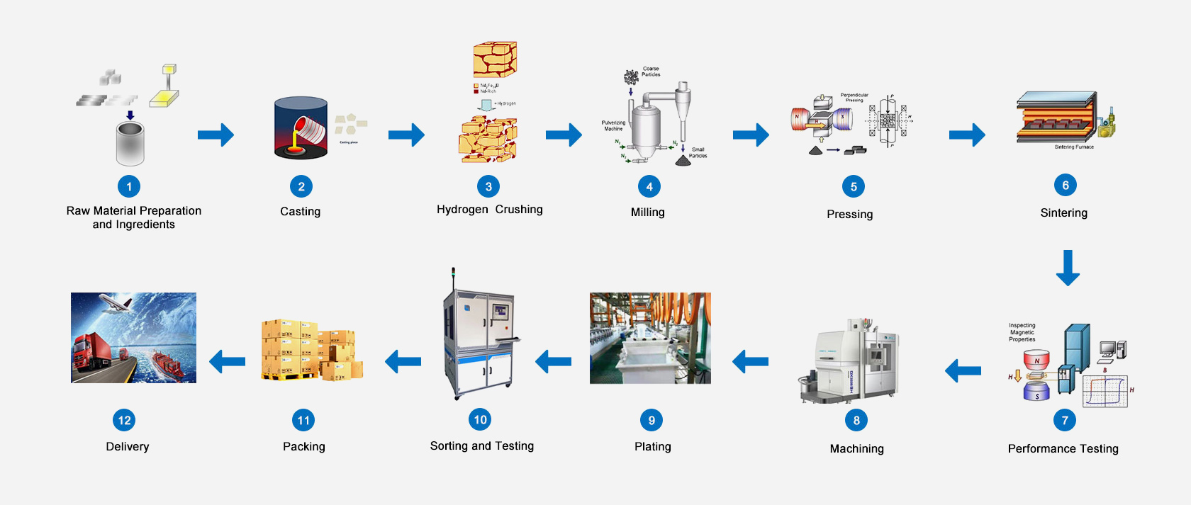 Jinlun Magnet prin sistemul de producție inteligent certificat de sisteme internaționale precum IATF16949 și ISO9001/14001, combinat cu software de sistem precum ERP, MES și WMS, am obținut trasabilitatea calității întregului proces de la materiile prime la produsele finite. Asigurând în același timp calitatea produselor, continuăm să reducem costurile de producție prin inovarea proceselor, oferind clienților soluții rentabile, care sunt mai mari decât standardele din industrie.